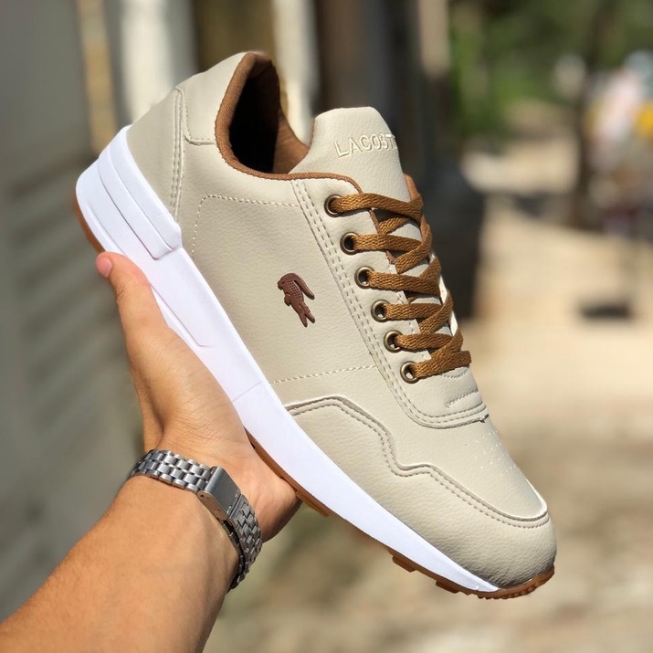 Tenis sapato Lacoste masculino em couro sola alta promo o