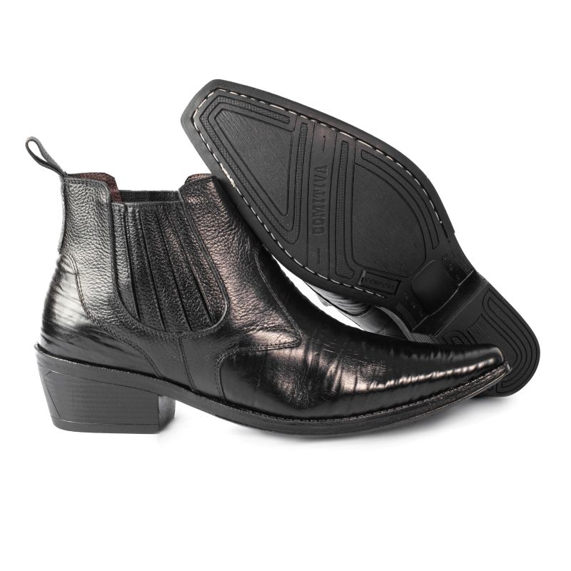 Bota Masculina Social Country Em couro Com Z per Salto 5cm Toda Espumada