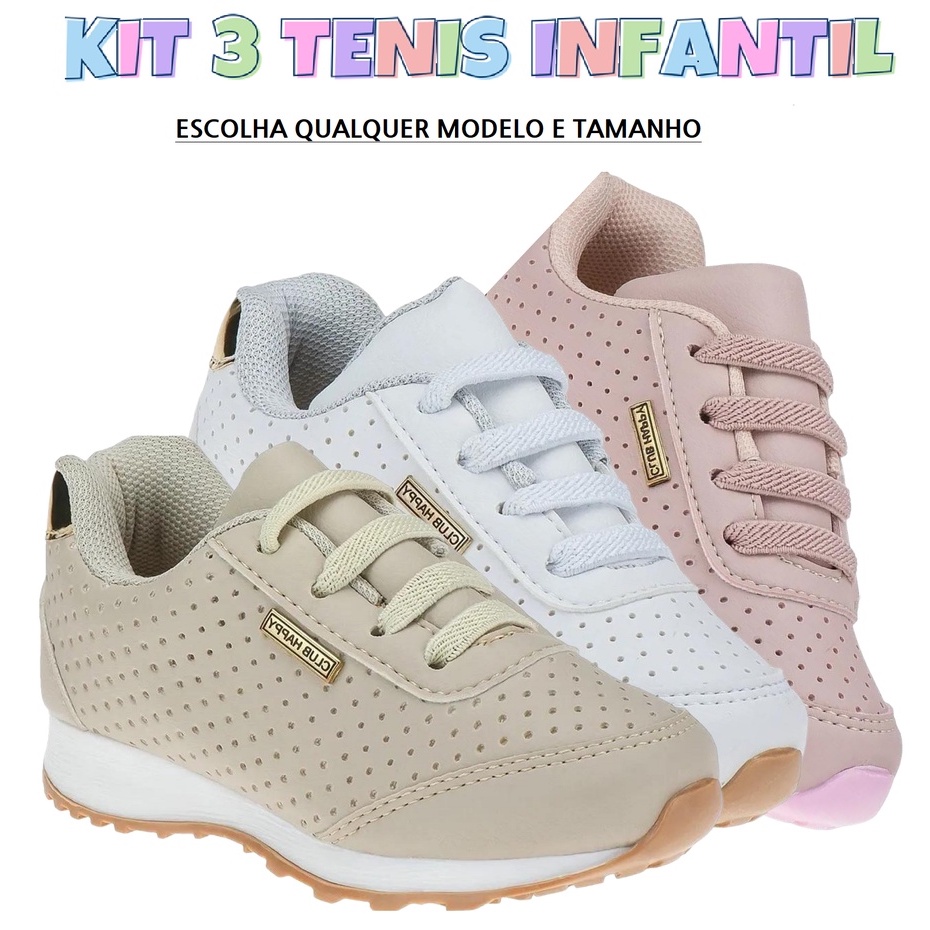Kit 3 Pares De Tenis Tenis Crian a Tenis Feminino Infantil
