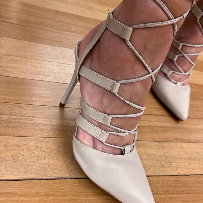 Sapato Scarpin Amarra o Bege Off White Arezzo Salto Alto Couro Natural Tamanho 37 38 Sapato Feminino Arezzo Usado 83115776 enjoei