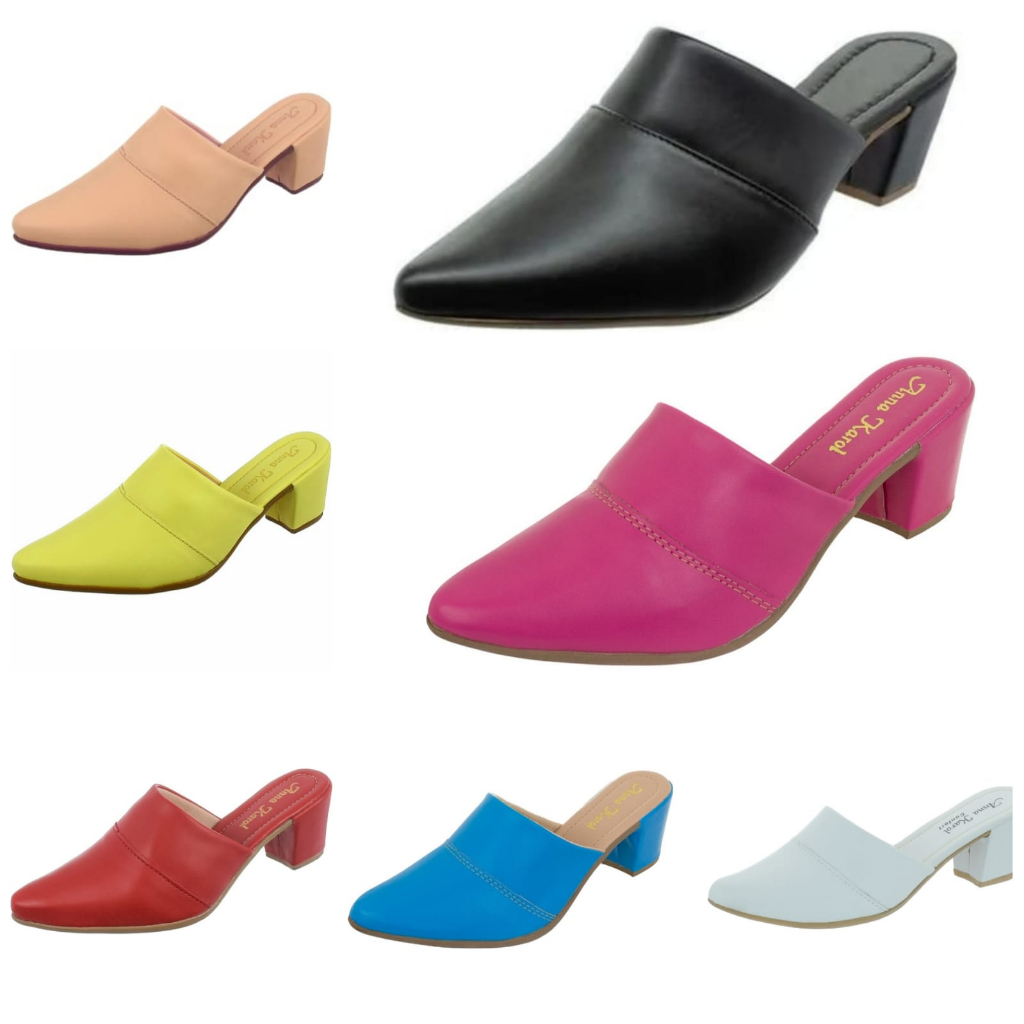 Scarpin mule salto clearance grosso, Scarpin Mule Bico Fino Salto Grosso Via Marte Sapato Feminino clearance
