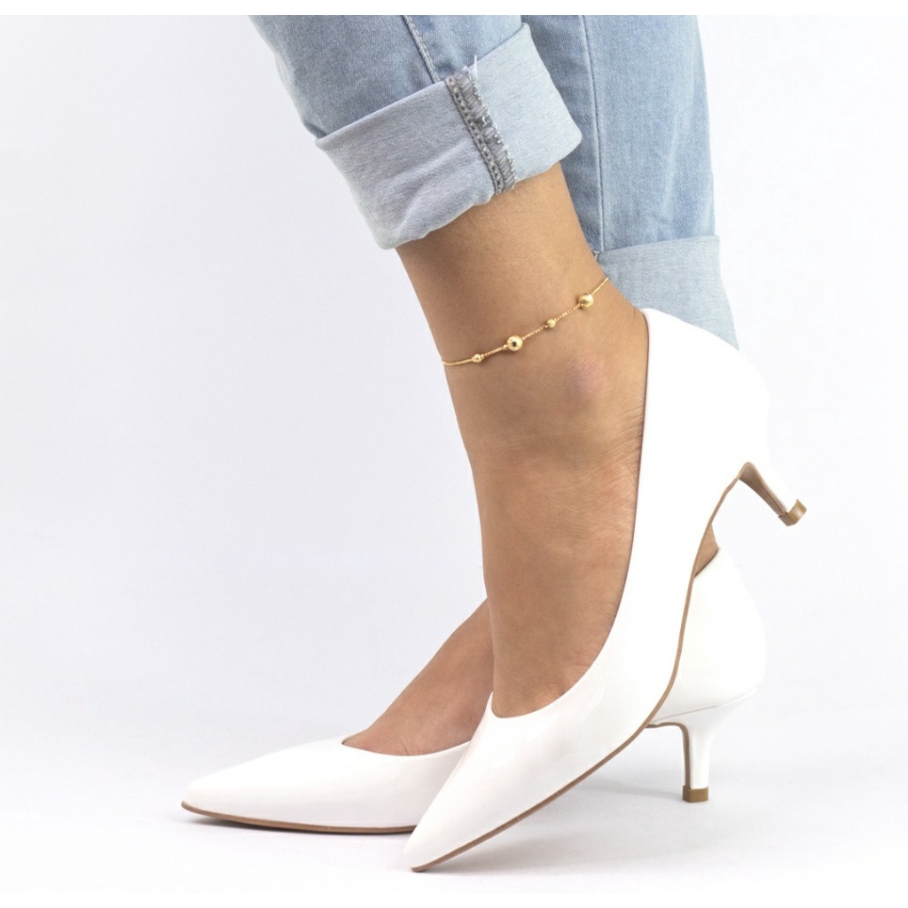 Sapato Scarpin Feminino Evelyn Bico Fino Salto Baixo Branco Pe