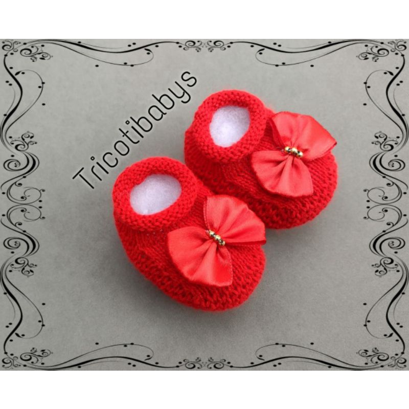 Sapatinho vermelho com la o para beb rec m nascido em tric
