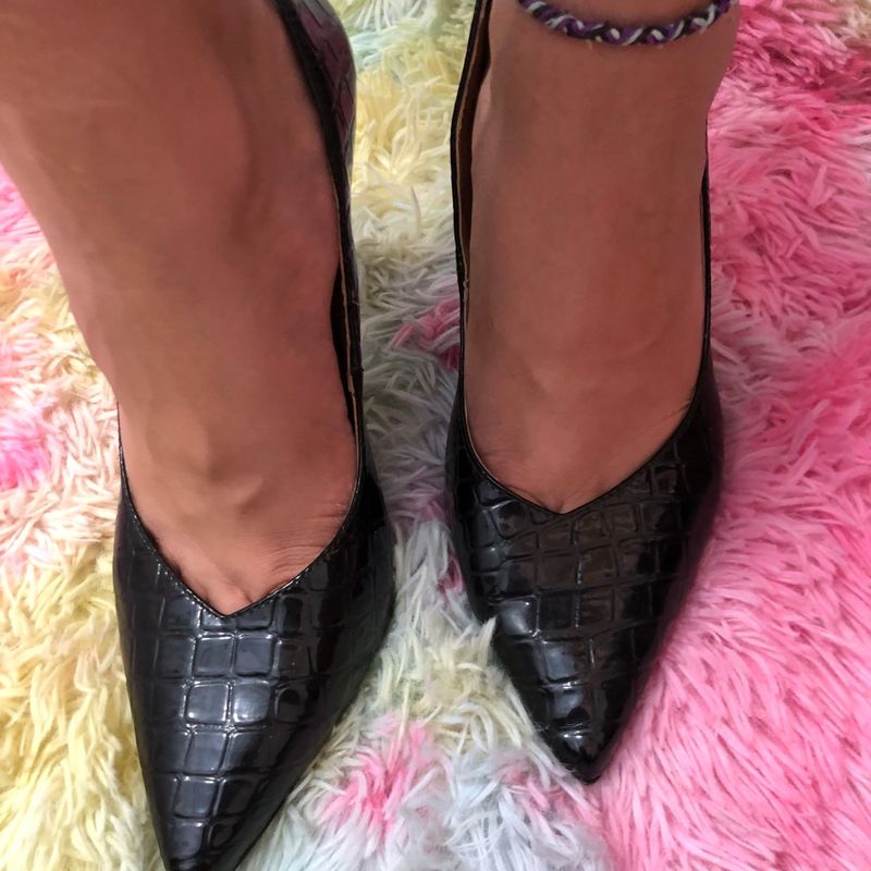 Scarpin donatta clearance, Donatta Scarpin Preto Animal Print Sapato Feminino Donatta Usado clearance
