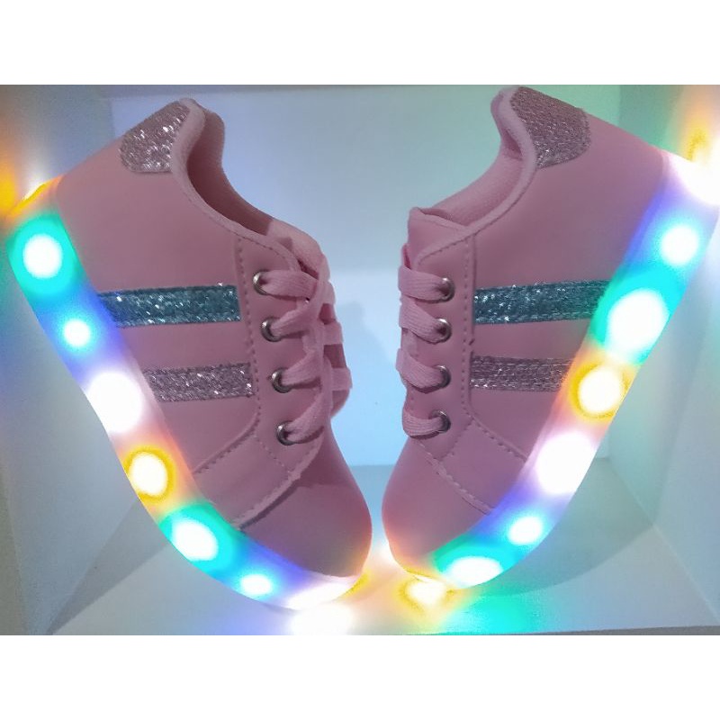 T nis De Led Luz Luzinha Infantil Menina Rosa beb com Glitter
