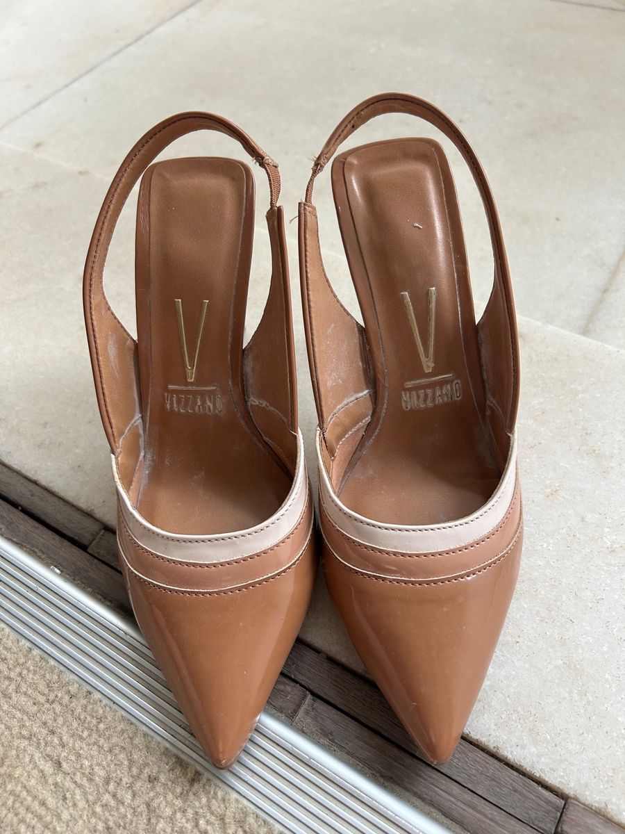 Scarpin clearance vizzano 34, Scarpin Vizzano Slingback Bico Fino Salto Baixo Bege 34 Bege clearance