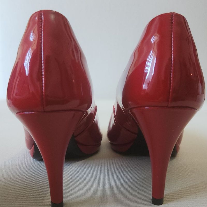 scarpin royalz verniz sola vermelha salto fino celine preto C A