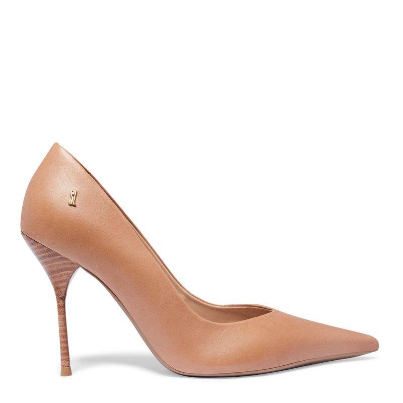 Sapato Scarpin Bege Couro Salto Alto Fino Santa Lolla