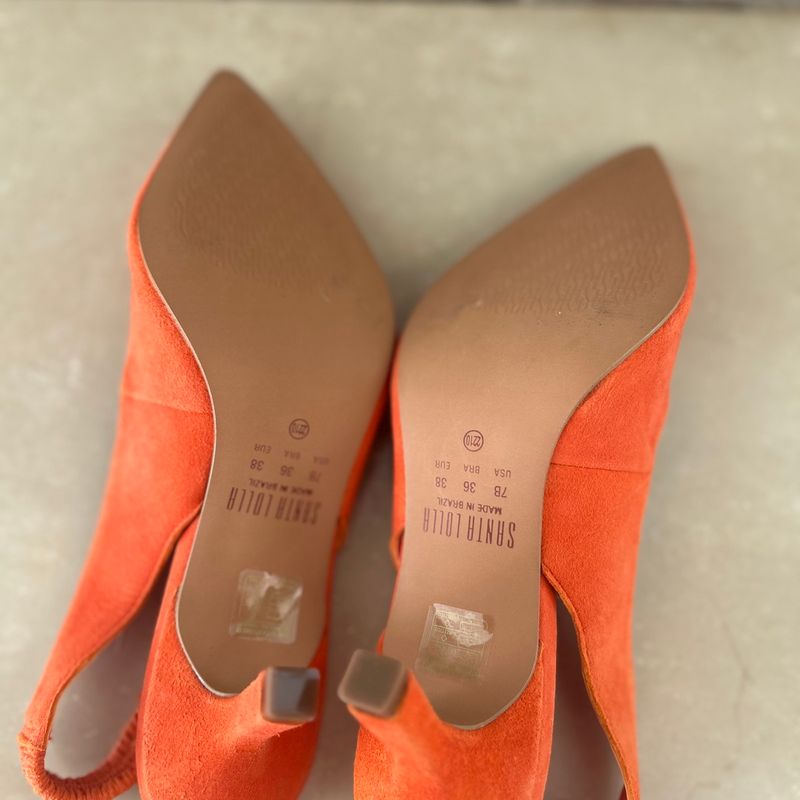 Scarpin laranja santa clearance lolla, Scarpin Couro Santa Lolla Salto Alto Bico Fino Laranja Zattini clearance