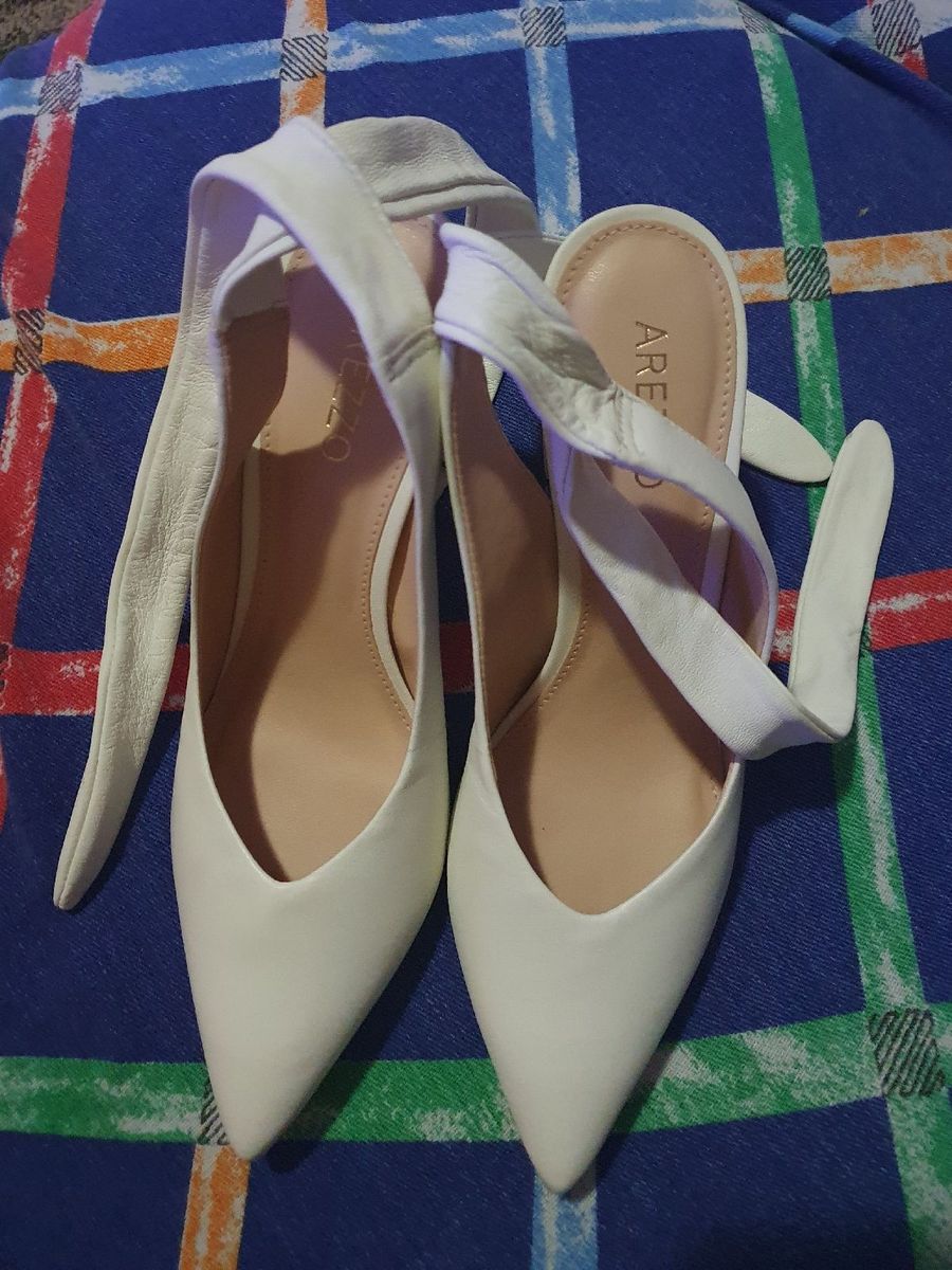 Sapato Scarpin Arezzo Branco de Amarrar Bico Fino Salto Alto Sapato Feminino Arezzo Nunca Usado 77188832 enjoei