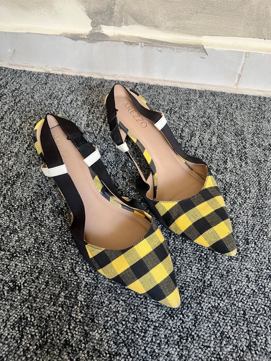 Scarpin clearance xadrez arezzo, Scarpin Tecido Bico Fino Alto Preto Arezzo clearance