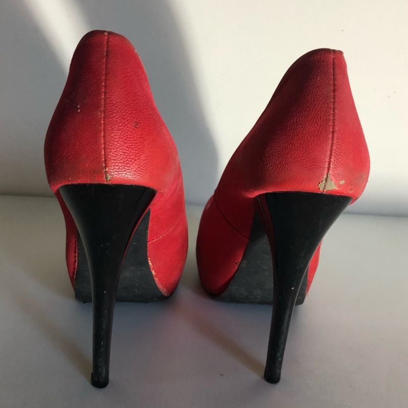 Scarpin Vermelho Verniz Bico Fino Salto Fino Alto Feminino
