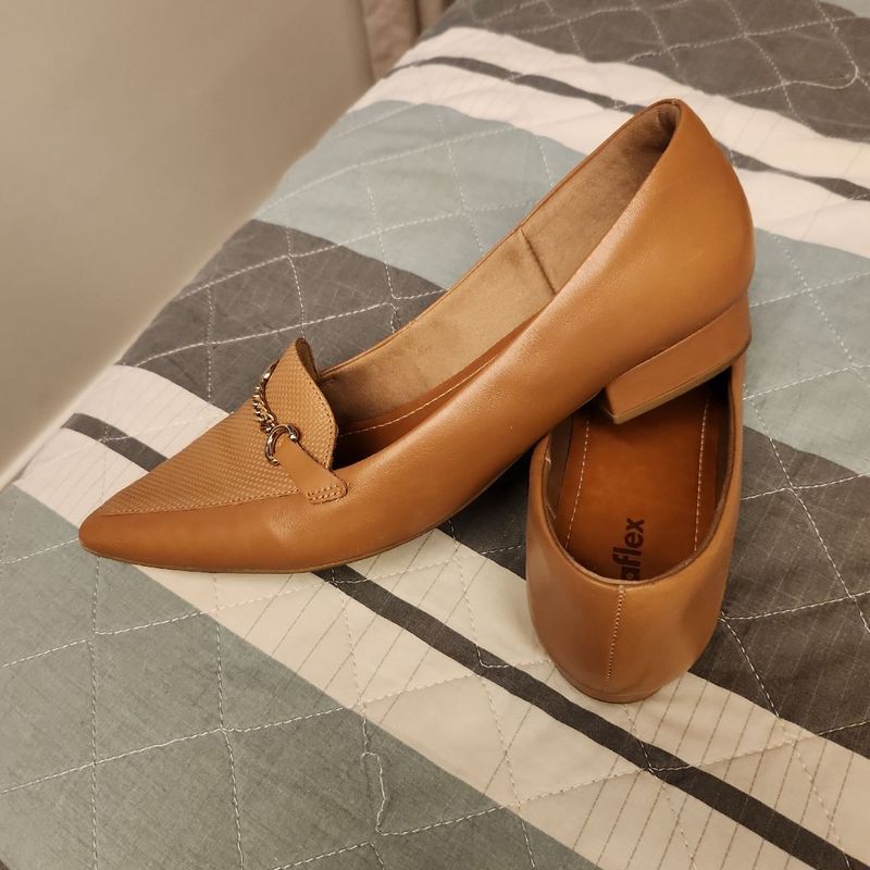 Usaflex clearance scarpin bege, Scarpin Bege Salto Bloco Couro Enfeite Usaflex Sapato Feminino clearance