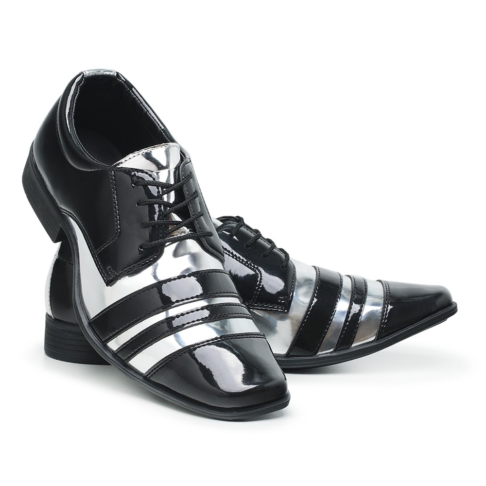 Sapato Social Masculino Italiano 840 Preto Prata Conforto Casual