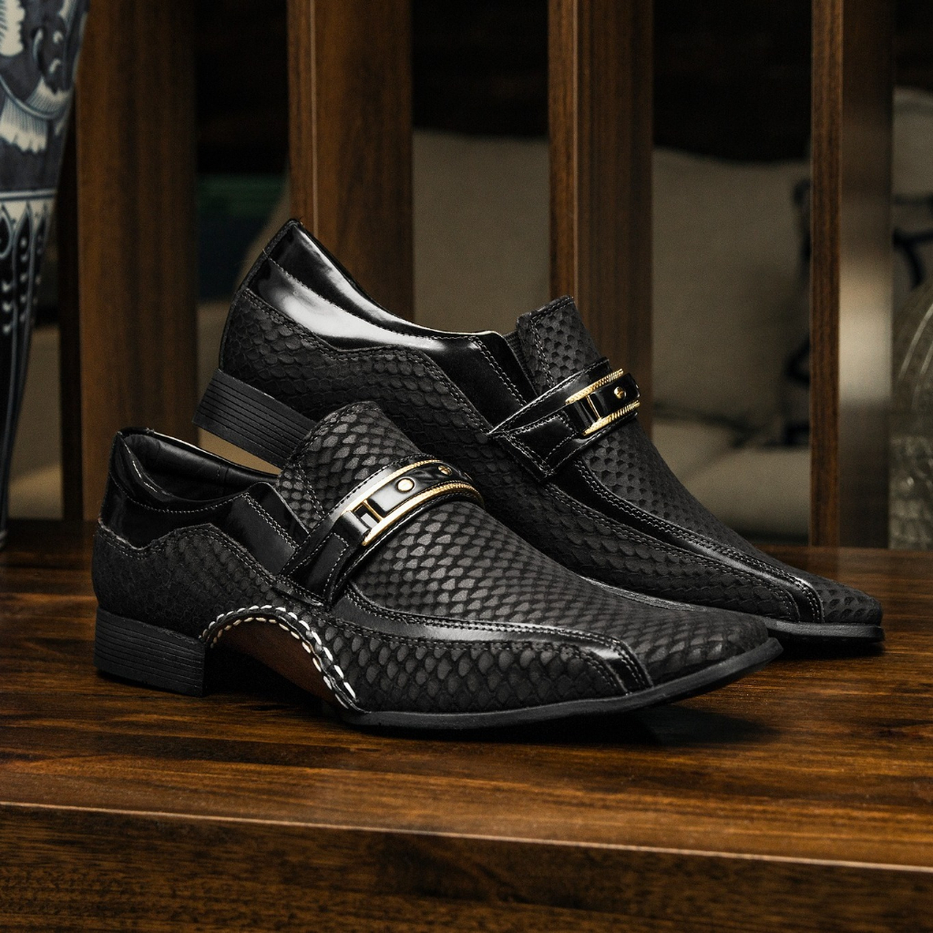 Sapato Social Calvest Couro Verniz Snake Premium Sola Costurada