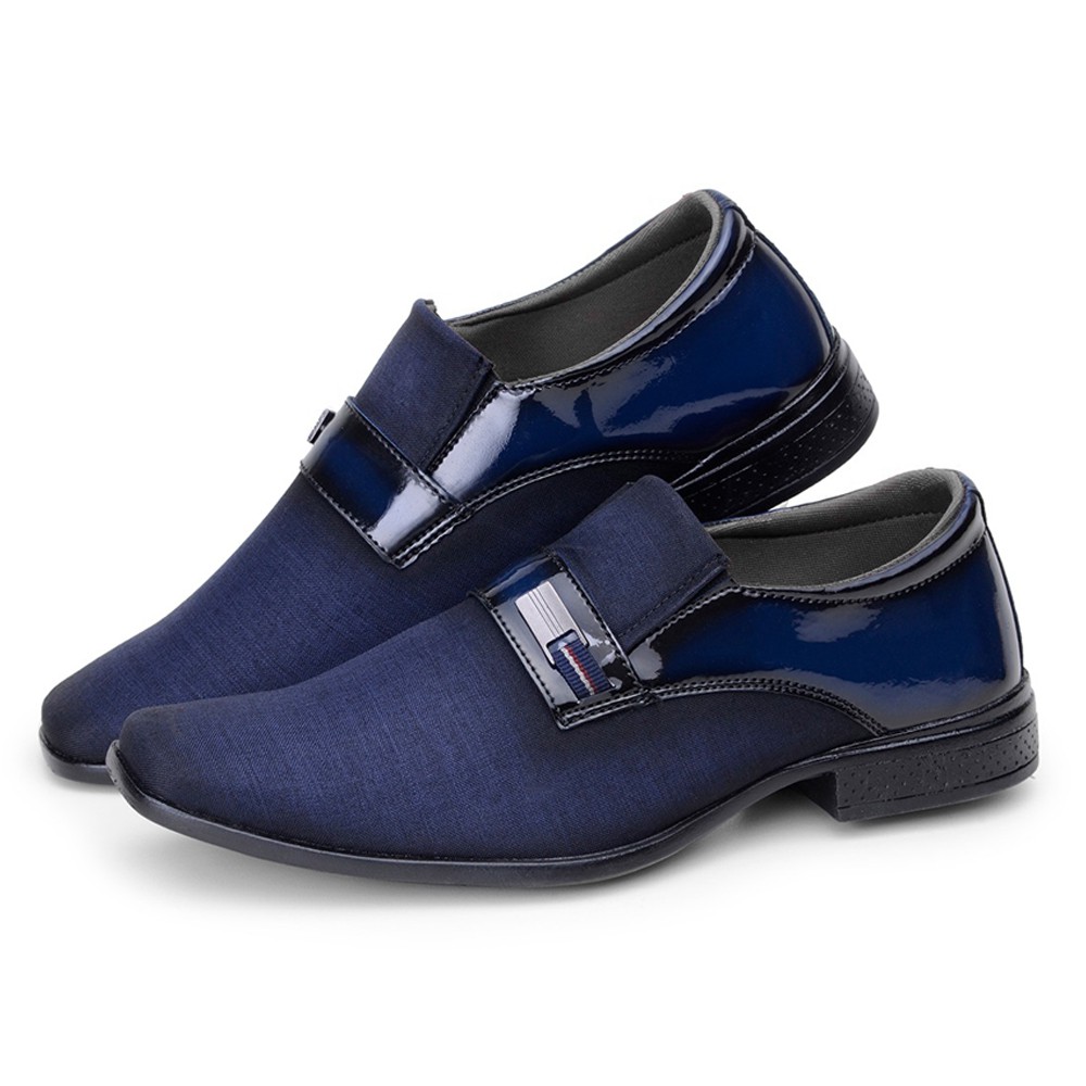 Sapato social menor clearance preço, Sapato Social Masculino Bico Fino De Couro Verniz Preto com Azul clearance