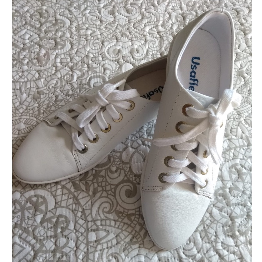 Usaflex clearance branco feminino, T nis Feminino de Couro Usaflex Branco AB6414 Vizzent clearance