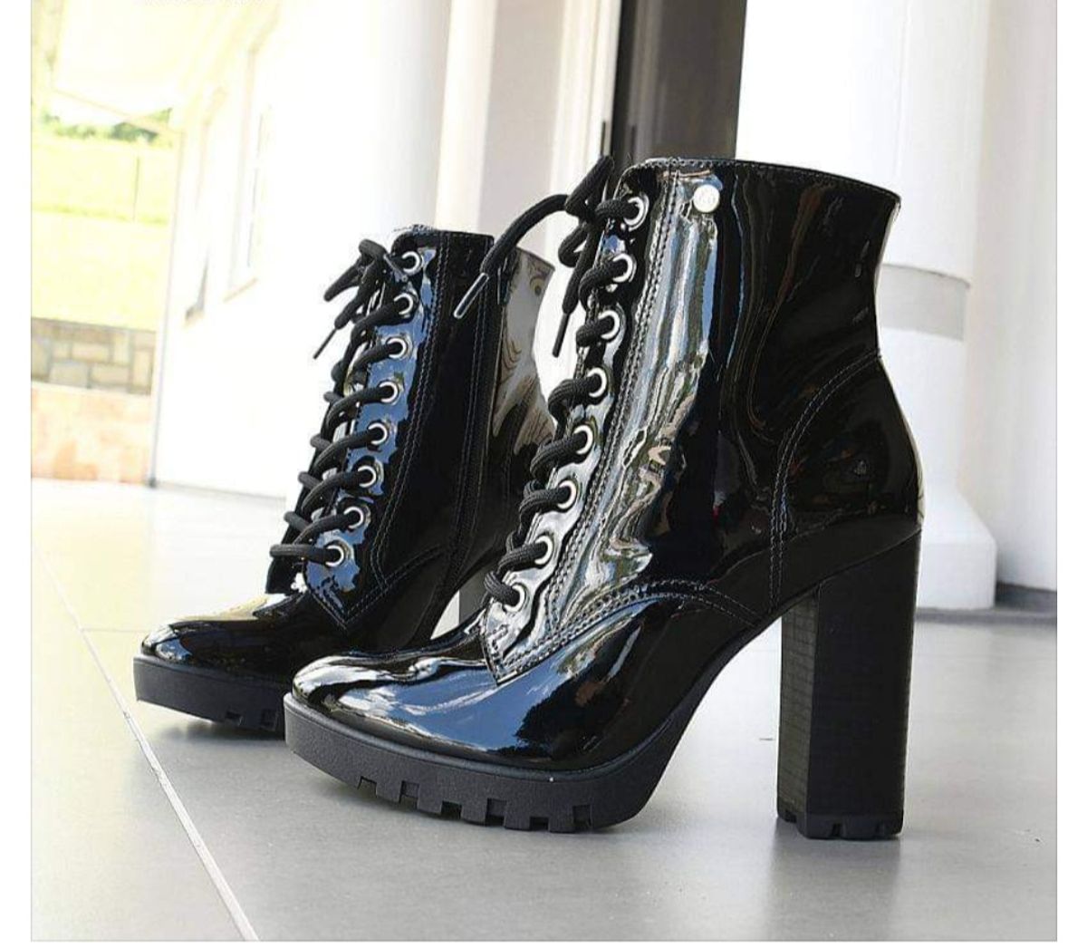 Botas Coturno Via Marte Salto Grosso Verniz Preto 203605