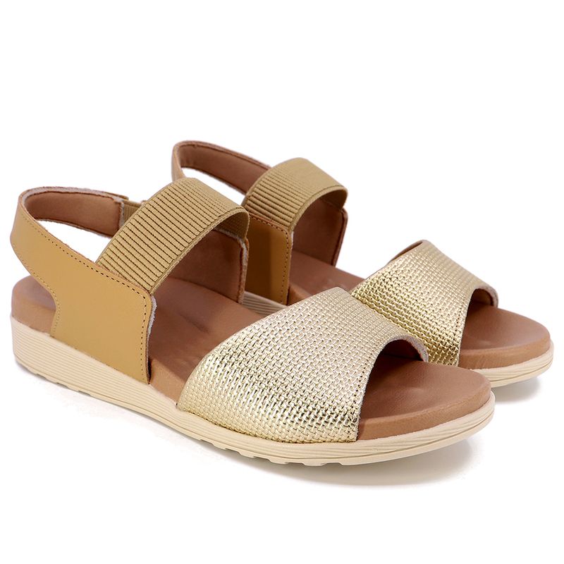 Sand lia Salto Baixo Usaflex Couro Dourado MM0801001