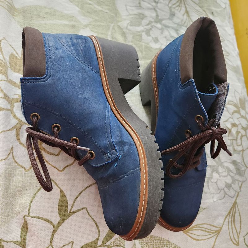 Bota Coturno Via Marte Salto Metalizado Azul Compre Agora