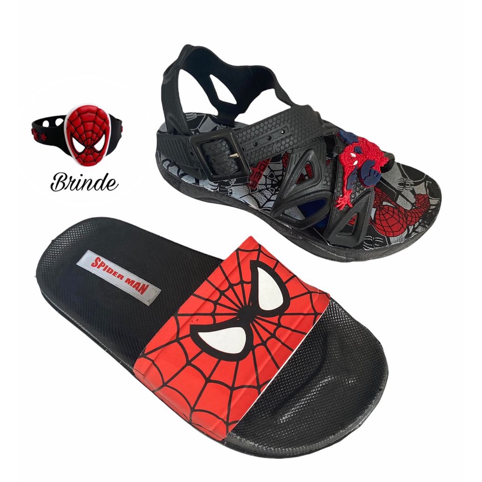 KIT Sand lia Papete Chinelo Infantil Menino Masculino Personagem PULSEIRA HOMEM ARANHA CAPITAO AMERICA