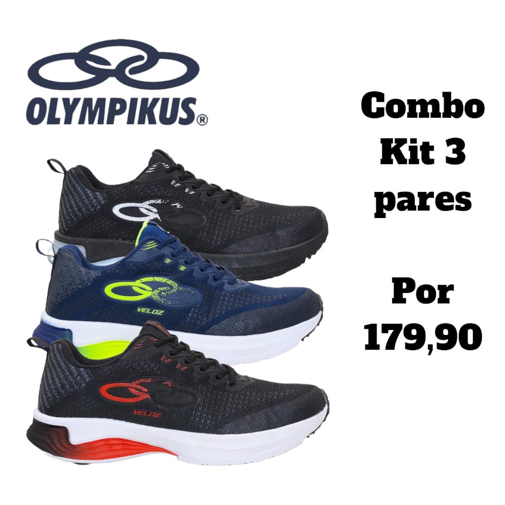 Combo Kit 3 Pares T nis Masculino Olympikus Veloz Esportivo