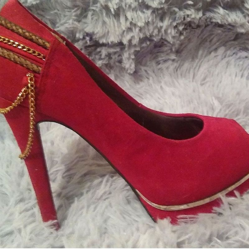 Sapato Alto Vermelho Salto de Veludo com Corrente com Detalhe Dourado Sapato Feminino Crysalis Nunca Usado 59258694 enjoei