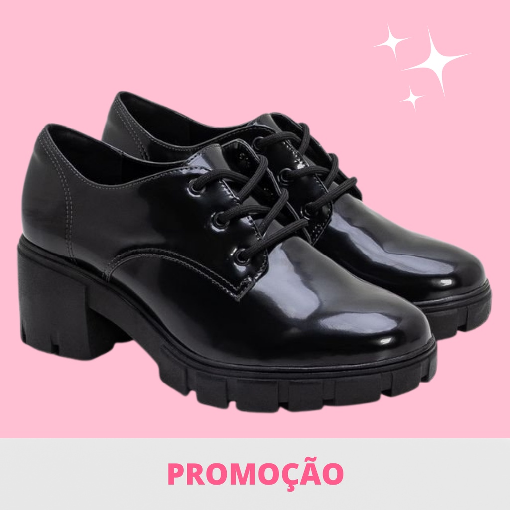 Oxford Com Salto Feminino Verniz Preto VIA MARTE PROMO O