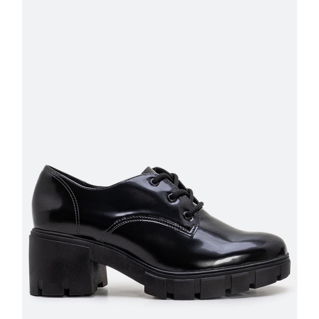 Oxford Sapato Feminino Verniz Salto Tratorado Preto VIA MARTE PROMO O
