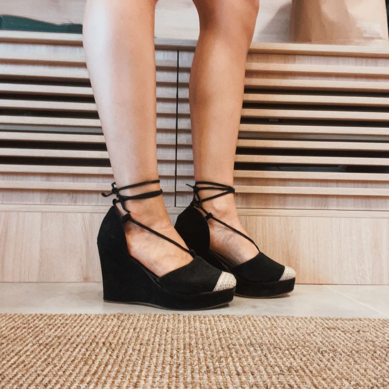 Anabela clearance preta fechada, Sand lia Em Couro Anabela Maria Paula Fechada Largas Cordas Preta clearance