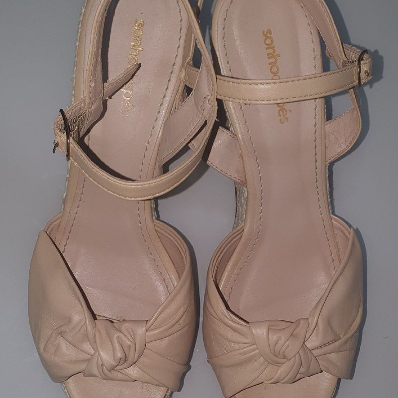 Sand lia Anabela Bege Claro Aberta com La o em Couro Fake