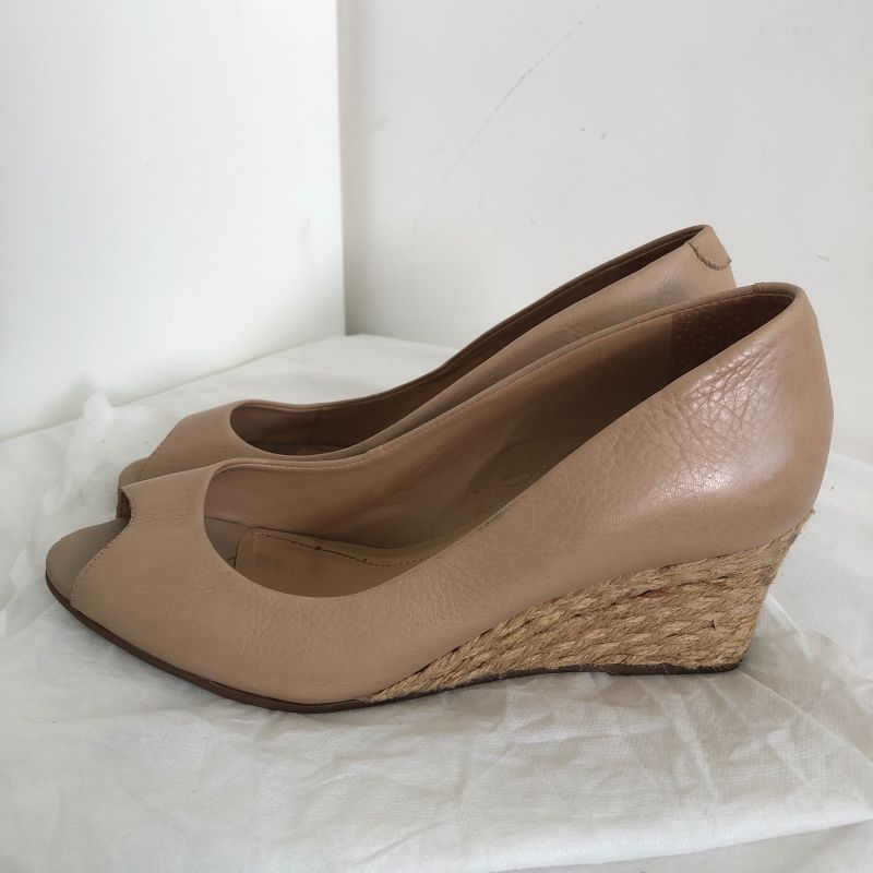 Scarpin peep toe de couro com salto anabela. Sapatos Sapatos