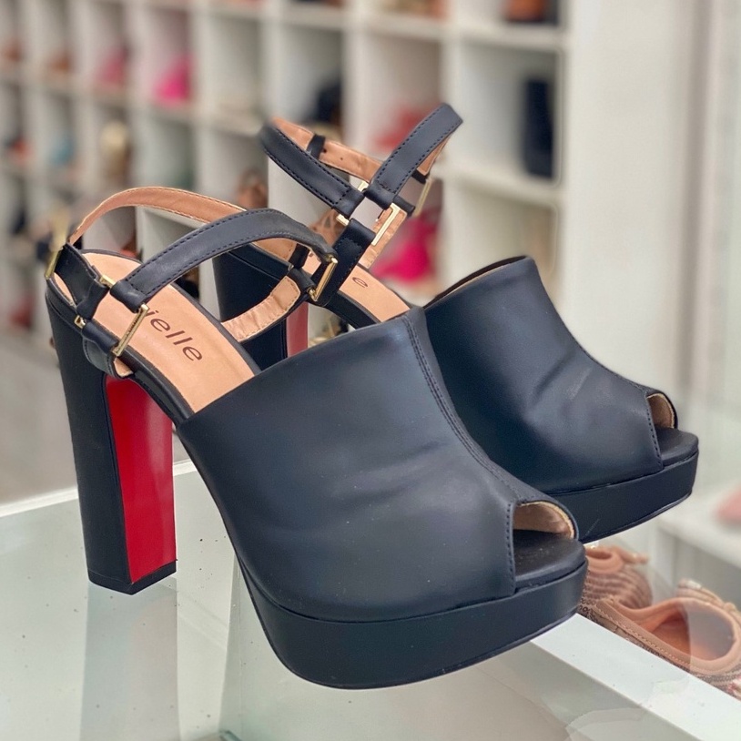 Sand lia Meia Pata Plataforma Salto Grosso Corino Preto Tamanho Especial Numera o Grande