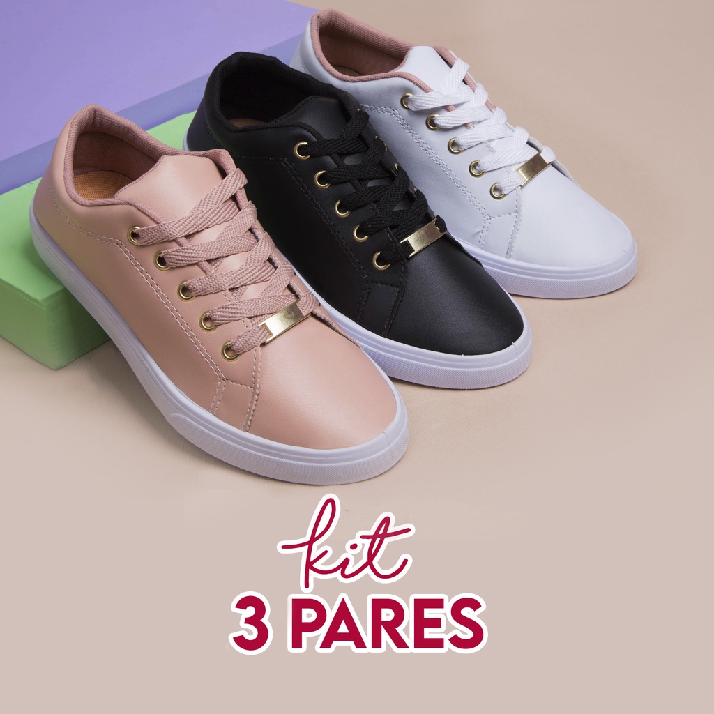 Kit 3 Pares Tenis Feminino Casual Sint tico Original Confortavel Barato