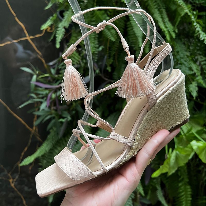Sand lia Anabela Arezzo Salto Baixo Tassel Rosa Snake Sand lia