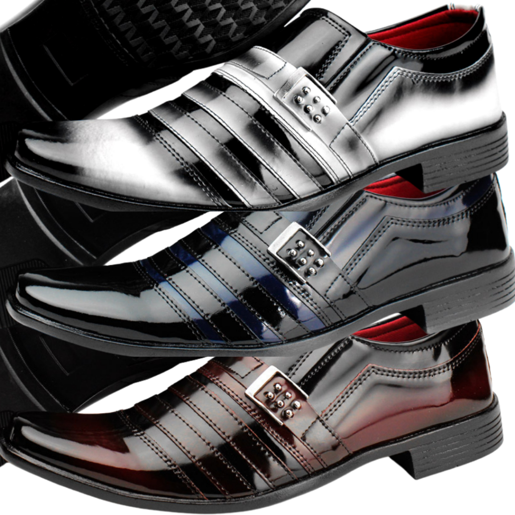 Kit Conforto 3 Pares Sapatos Social Masculino Listras Envernizados
