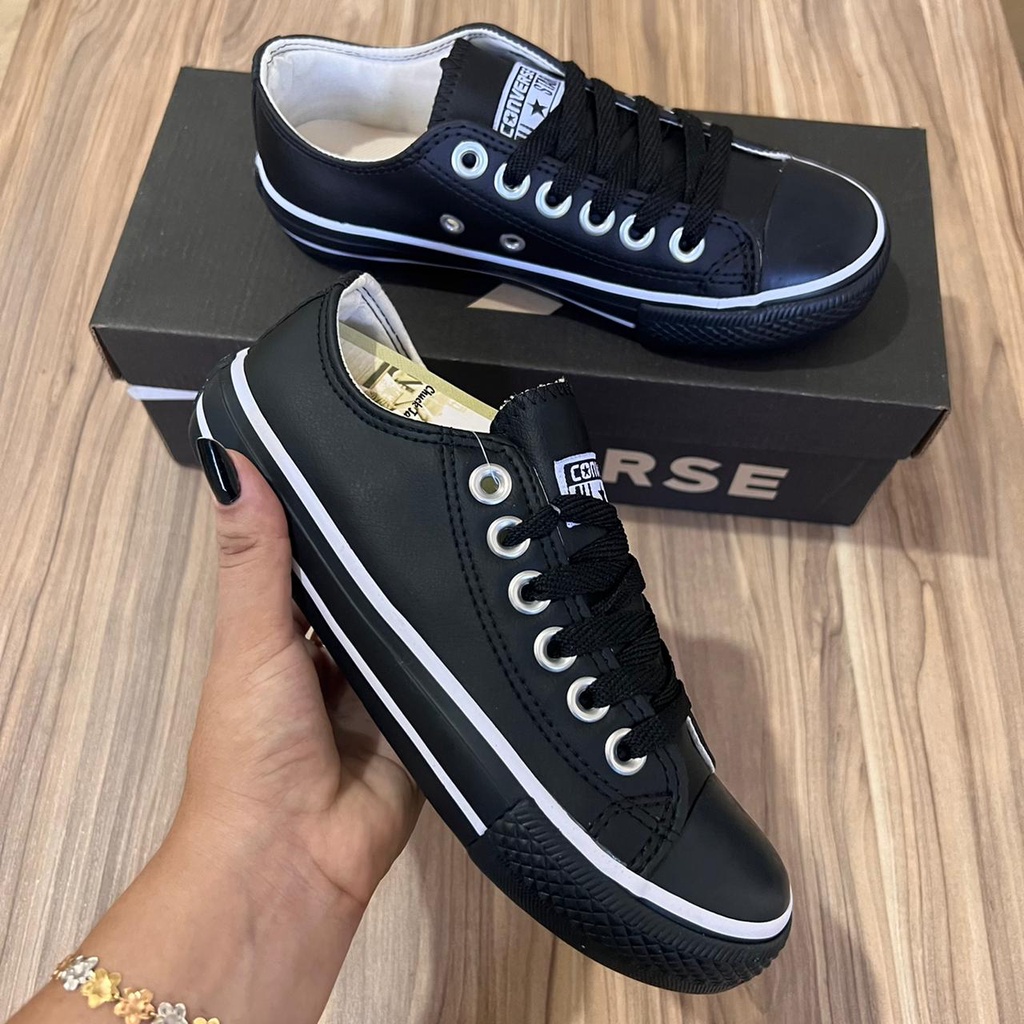 Tenis All Star Preto Sola Preta Couro Cano Baixo Masculino All
