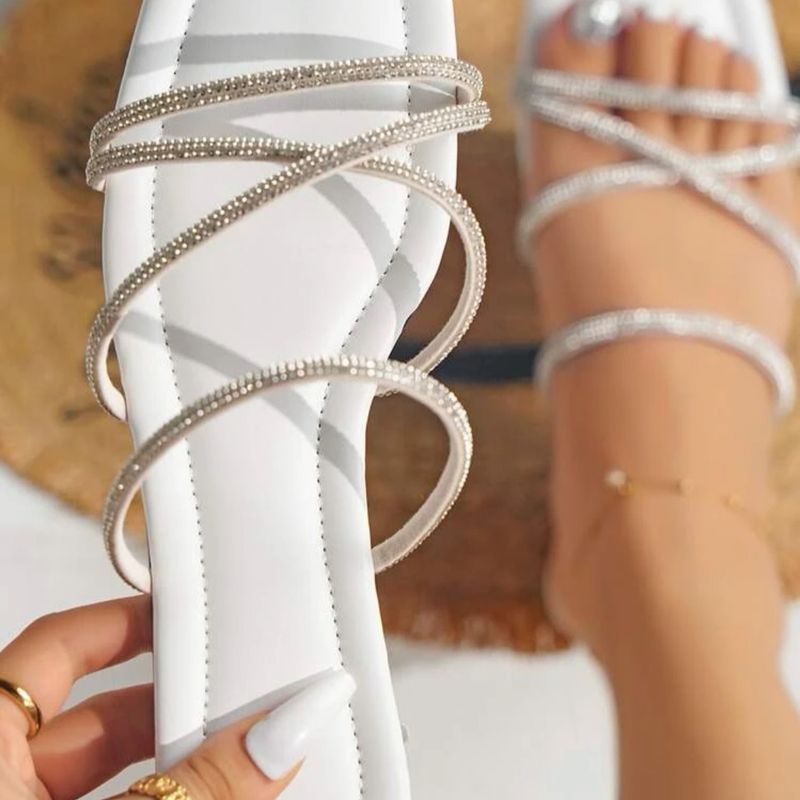 Sapato Rasteirinha Branca com Strass Linda Shein Rasteira