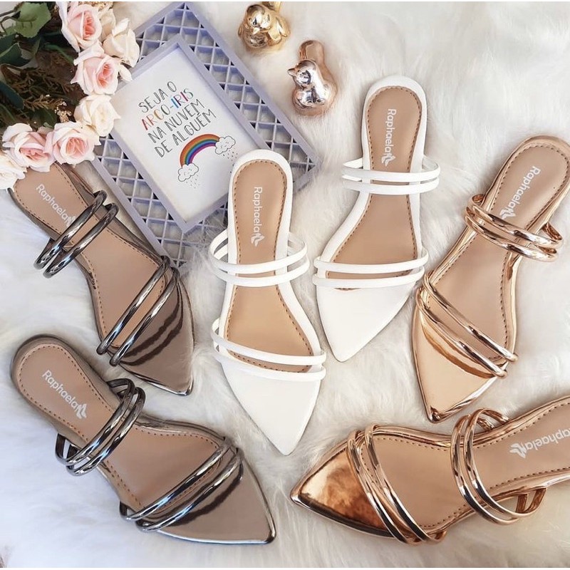 Rasteirinha rasteira baixa bico fino holografica Shopee Brasil