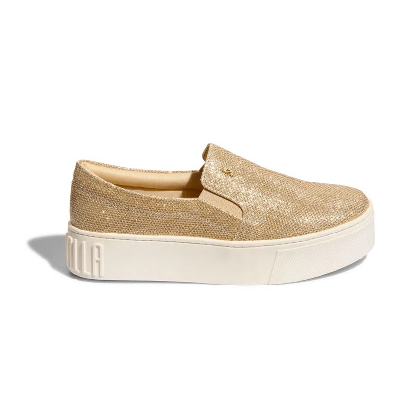 Slip on plataforma clearance santa lolla, Slip On Santa Lolla Sola Plataforma Brilho Preto Lurex clearance