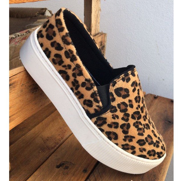 Slip On Tenis Feminino Casual Animal Print On a Oncinha