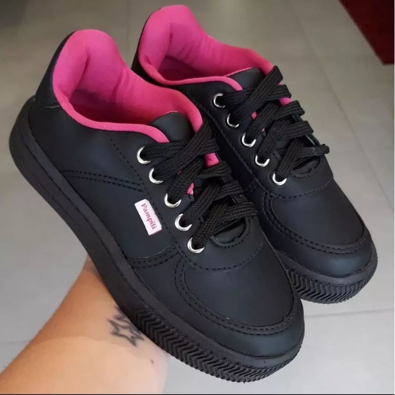 T nis Escolar Infantil Pampili Honey Escolar Preto e Pink
