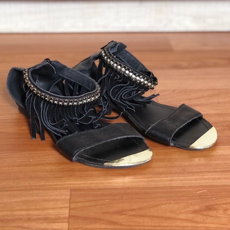 Sand lia Preta Franjas Feminina Pampili Sand lia Feminina