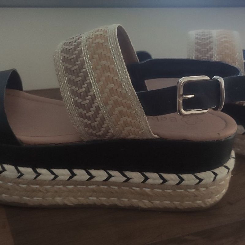 Sandalia bebece anabela clearance baixa, Butin o Cal ados Sand lia anabela baixa com detalhes em camur a clearance