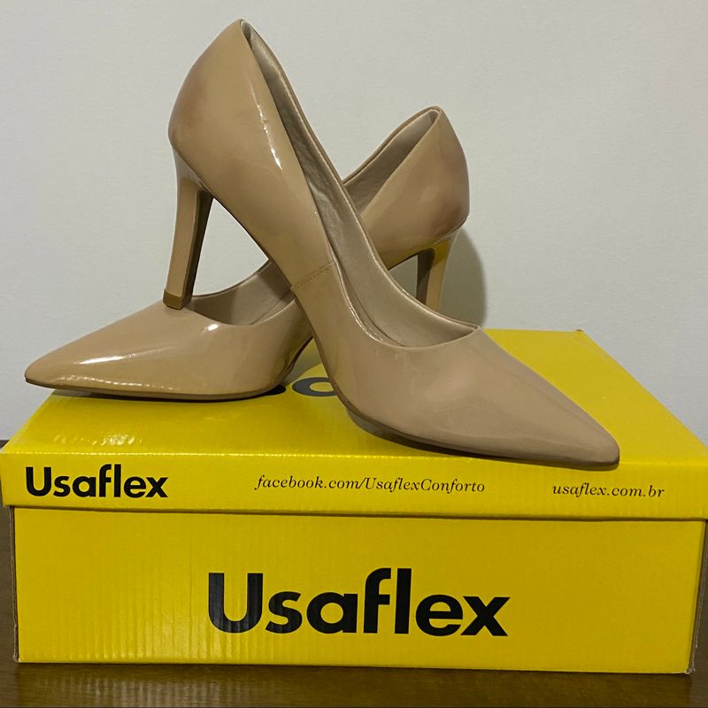 Usaflex verniz clearance, Sand lia Peep Toe Couro Usaflex Verniz Nude clearance