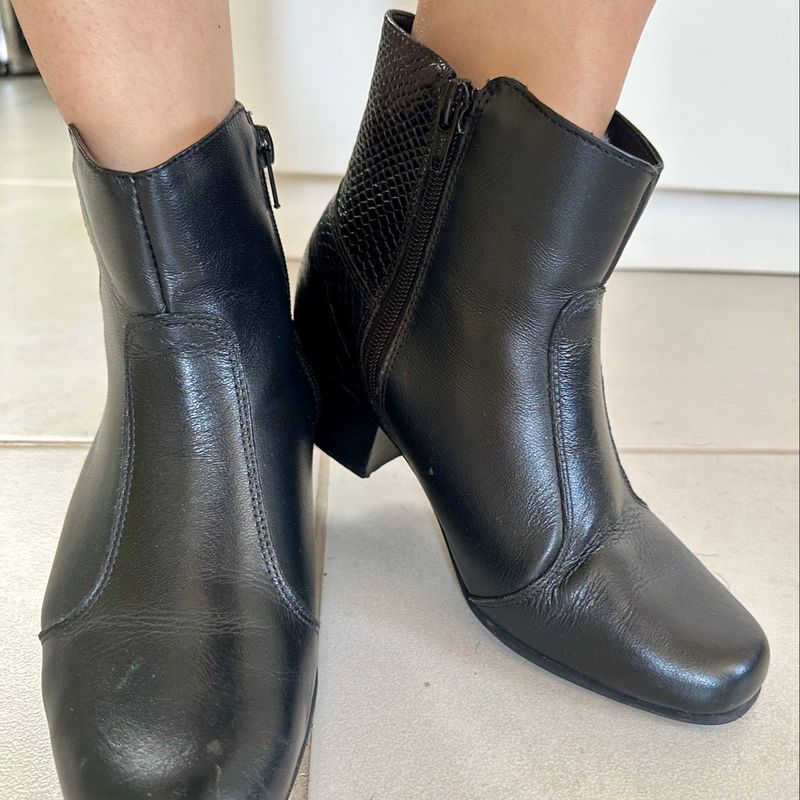 Bota Preta Cano Curto em Couro Bota Feminina Constance Usado
