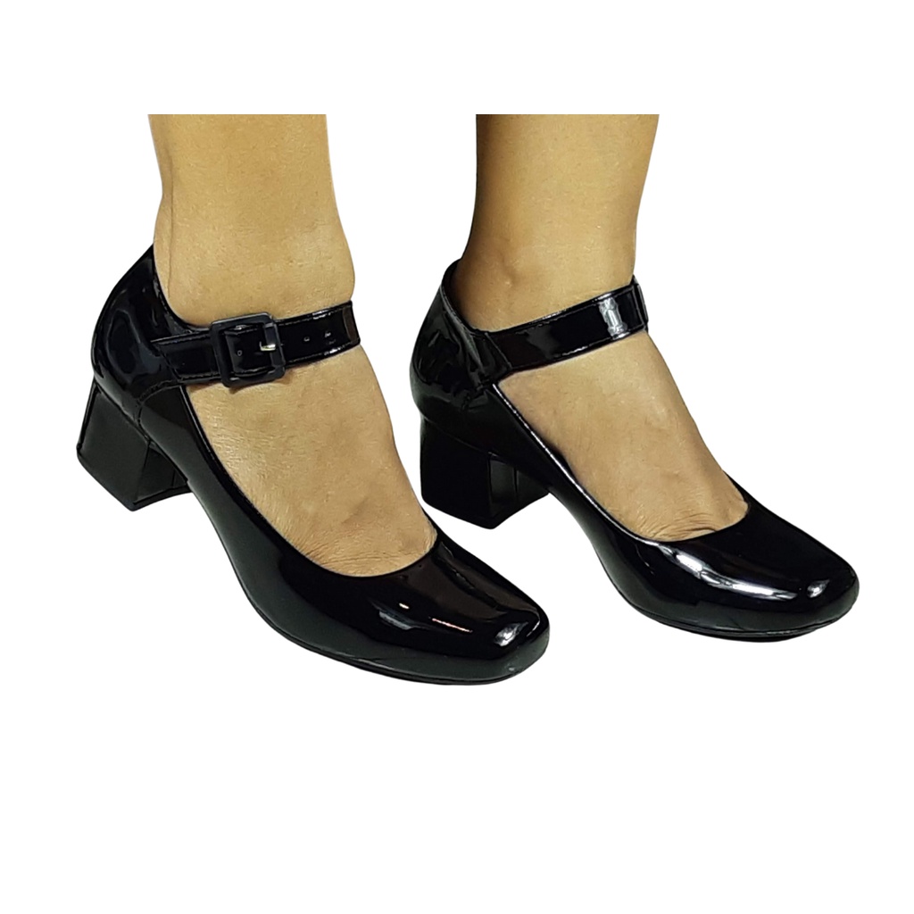 Sapato Social Boneca Confort vel Salto Baixo Grosso Preto Vermelho