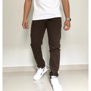 Cal a Masculino Marrom Sarja Slim Com Elastano Casual Top Shopee