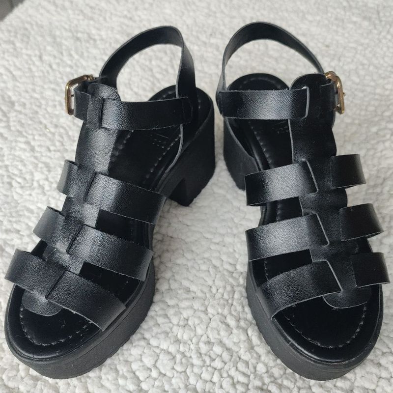 Sandalia bebece plataforma clearance preta, Bebec Sand lia Plataforma Preta Tiras de Couro Sand lia clearance