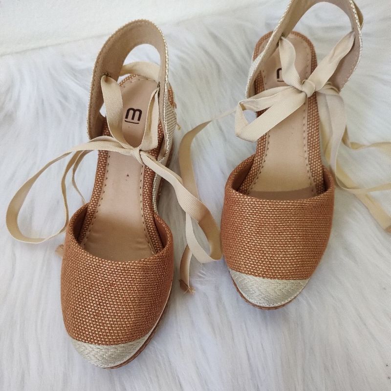 Sandalias anabela de clearance amarrar, Sand lia Espadrille Anabela de Amarrar Terra com Bege Sand lia clearance